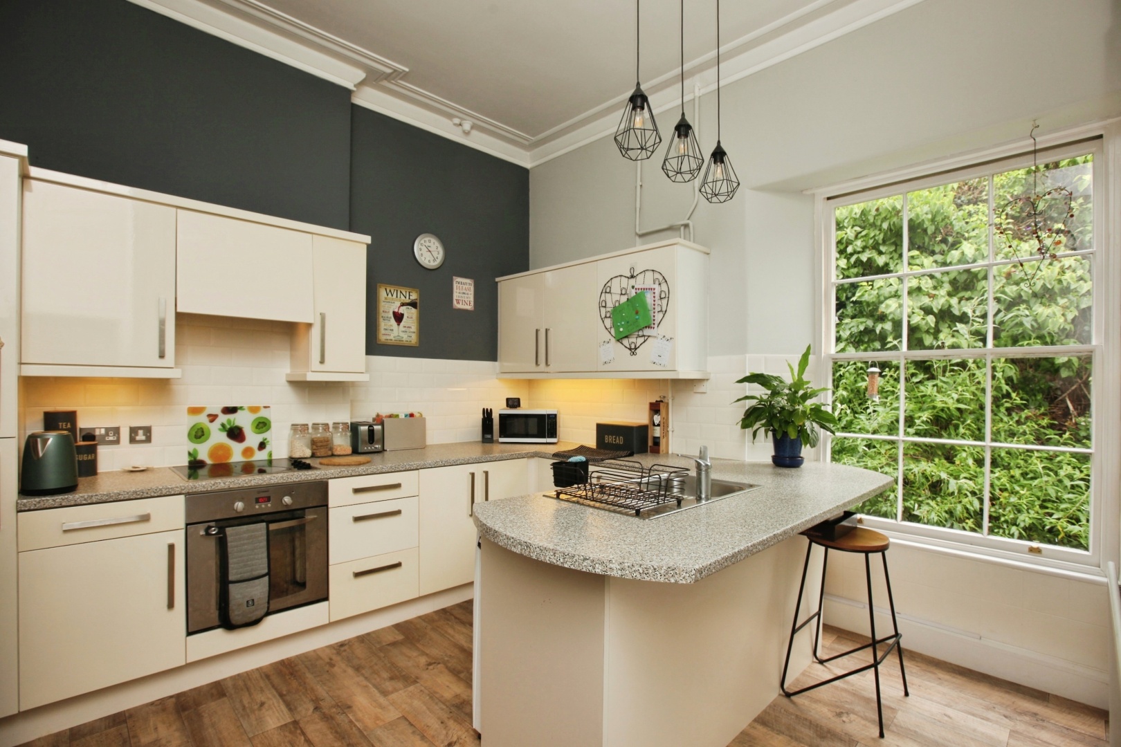 - Bright and Modern Kitchen With Breakfast Bar and Integrated Appliances