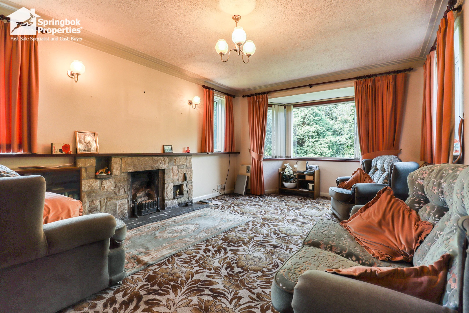 - Bay-Fronted Living Room with a Fireplace