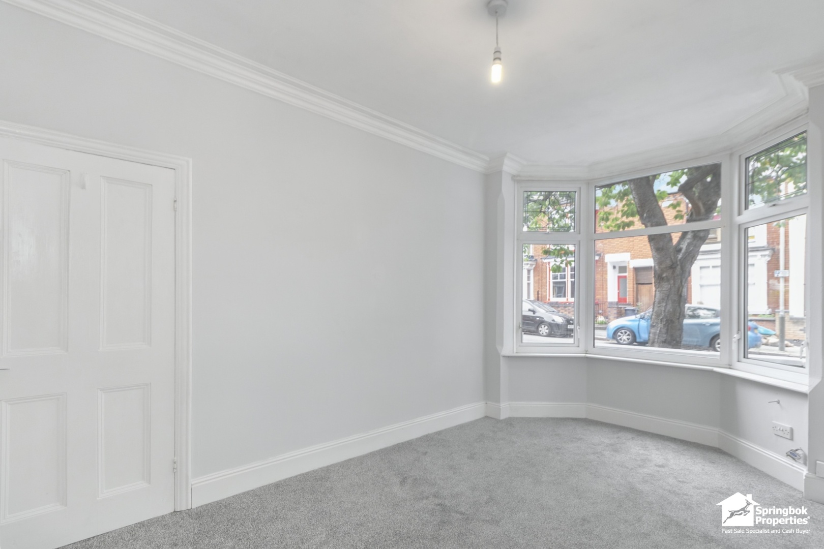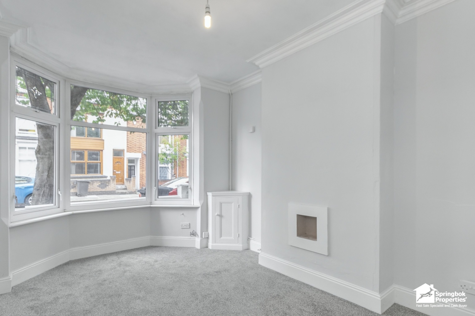- Bright lounge with bay window and fireplace surround