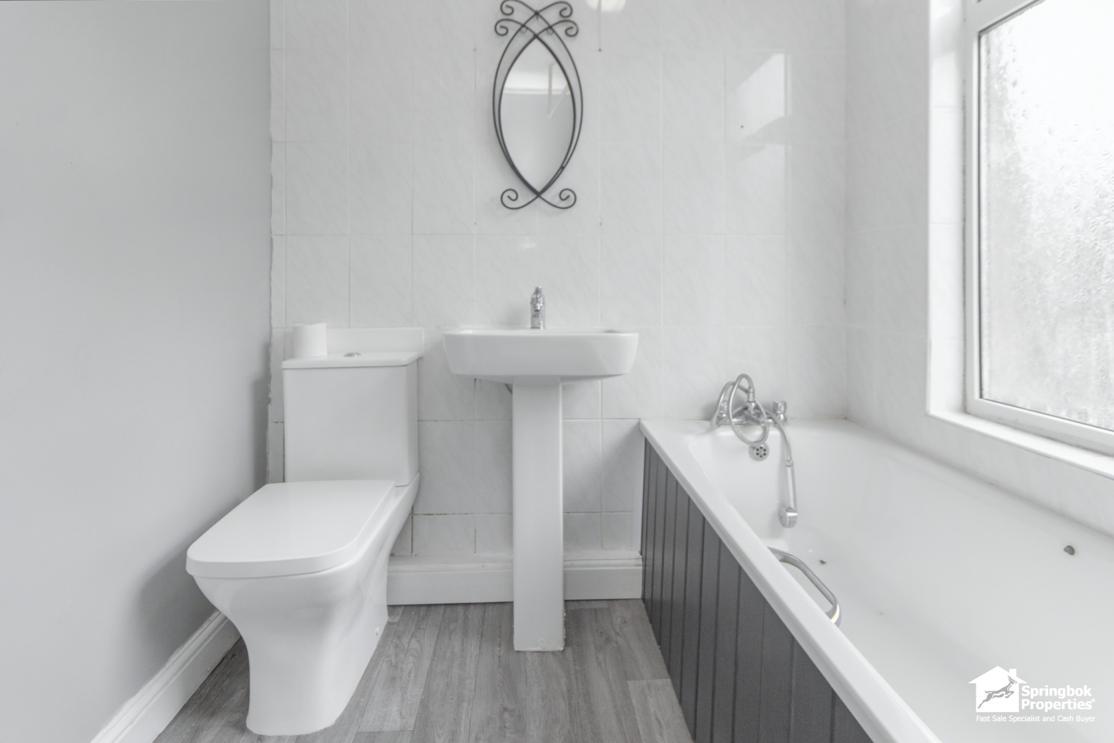 - Family bathroom with full-length bath and modern suite