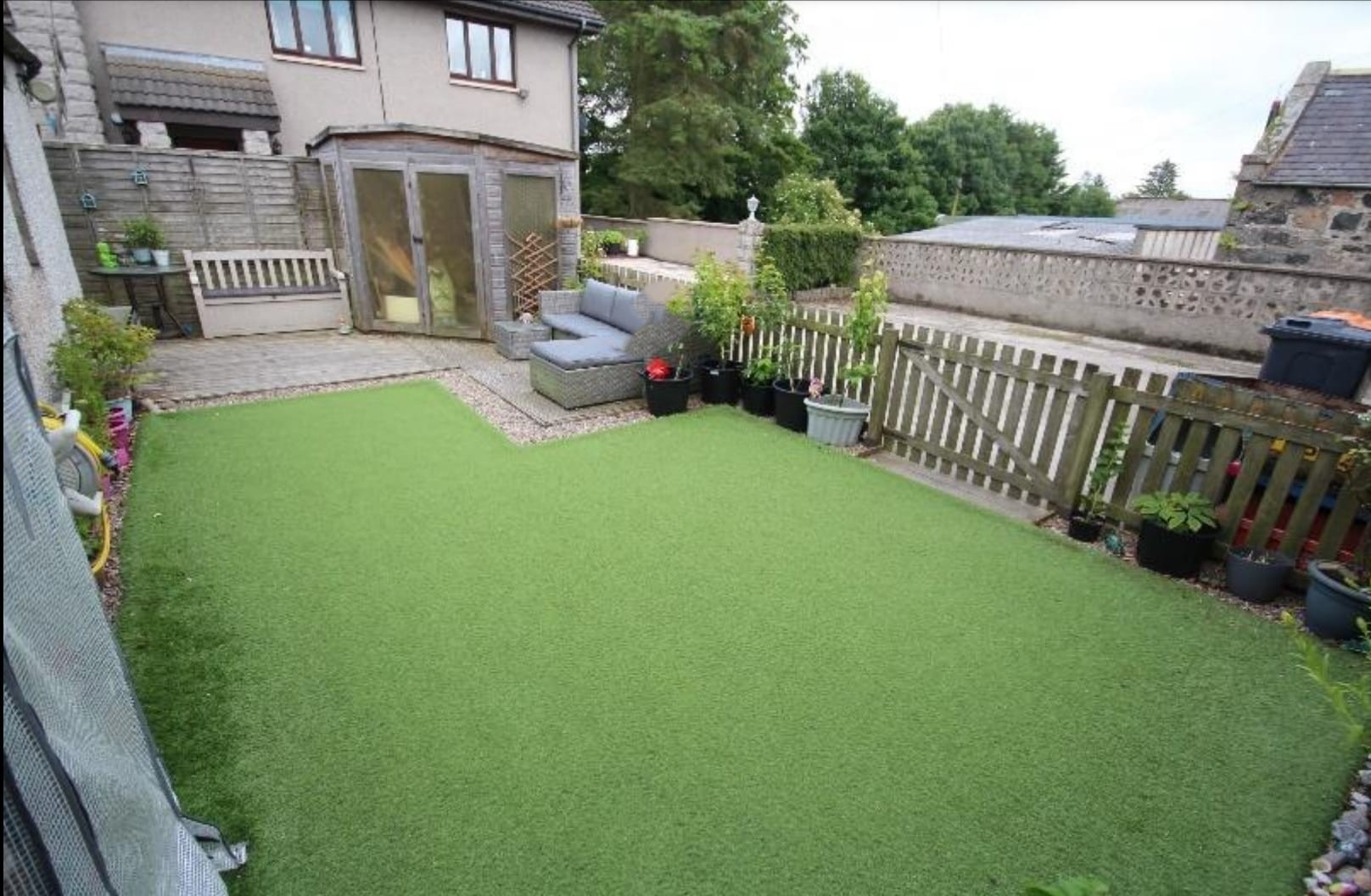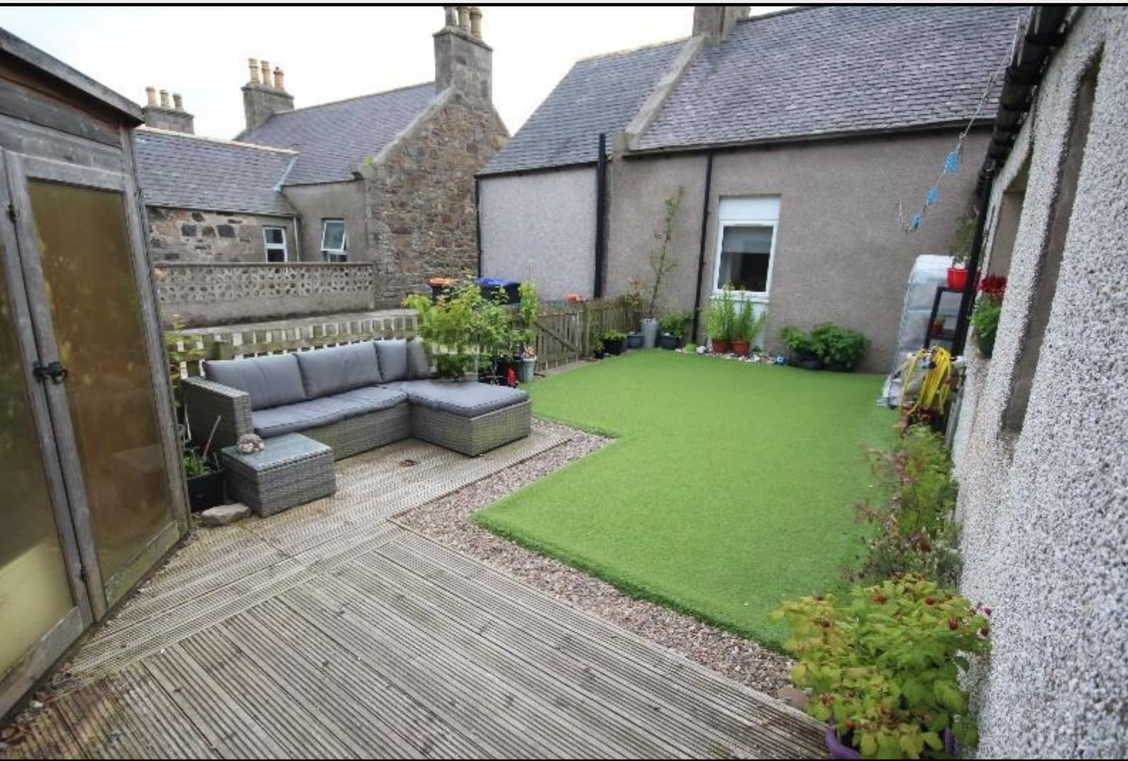 - Enclosed rear garden with decking & artificial lawn