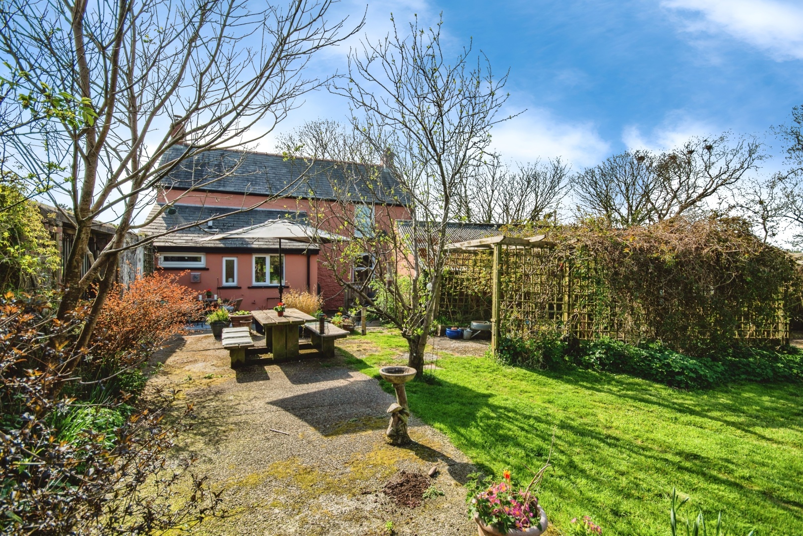- Lower garden having an outline of planning permission for a large 3 bedroom bungalow