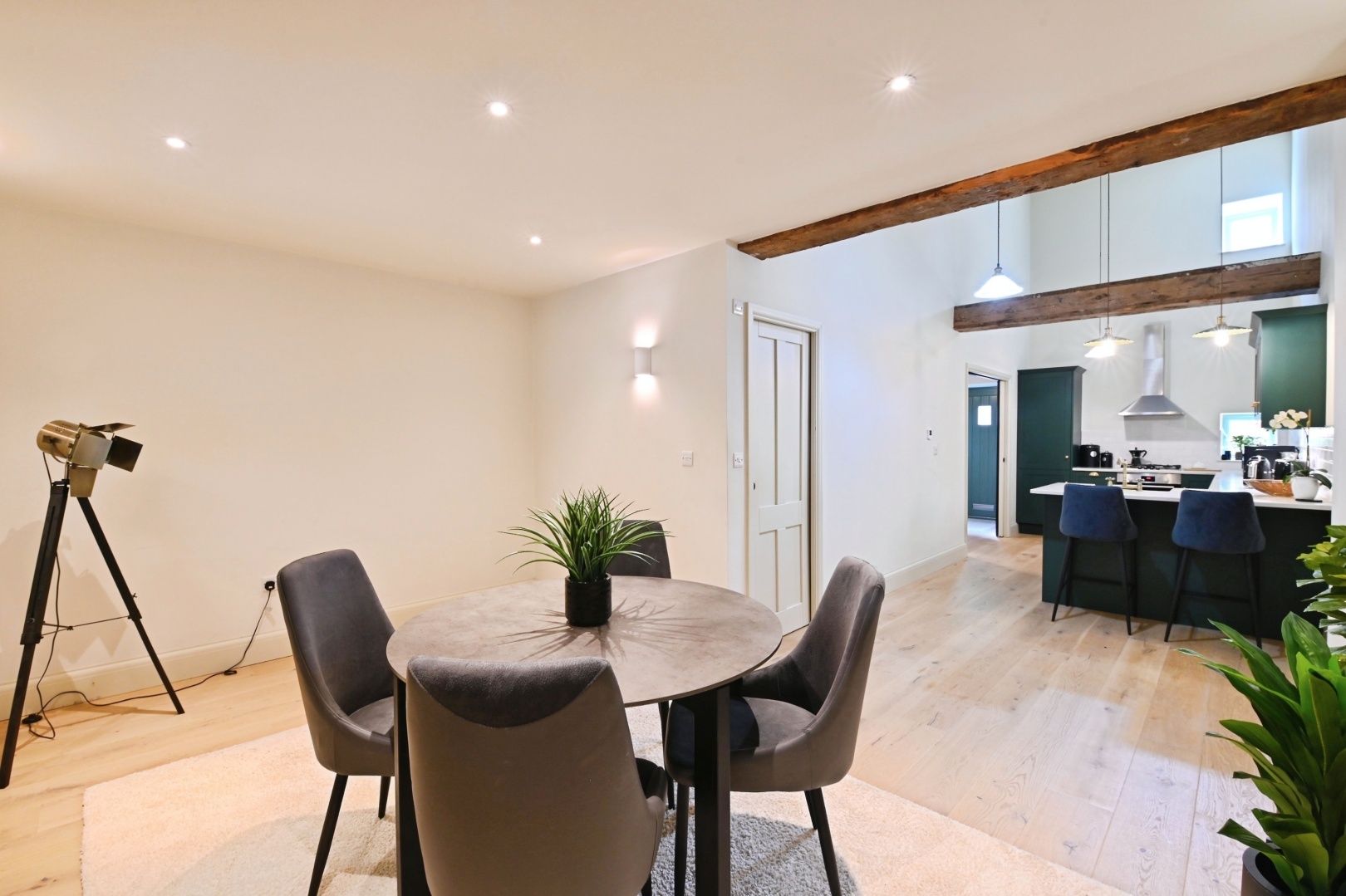 - Stunning Open-Plan Kitchen, Dining And Living Space With Exposed Beams